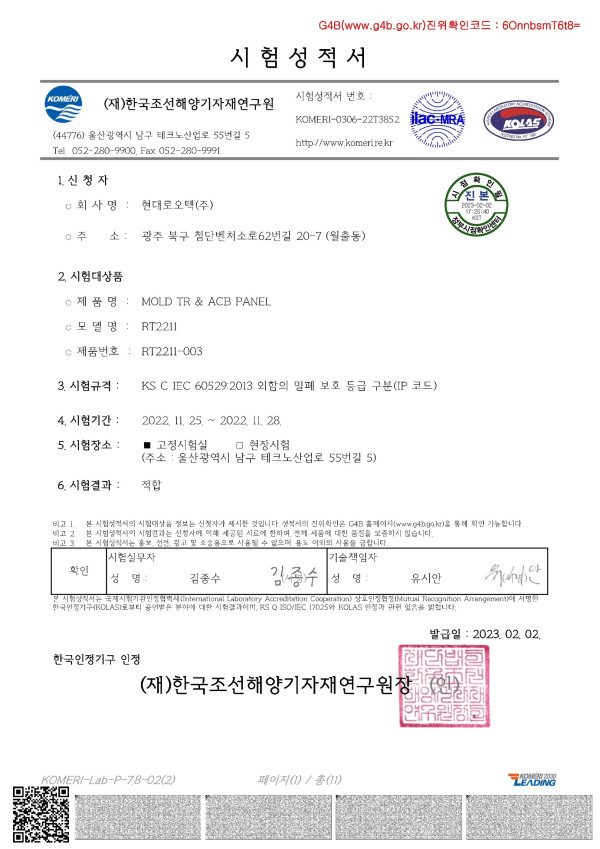 형식승인 MOLE TR & ACB PANEL 시험성적서
